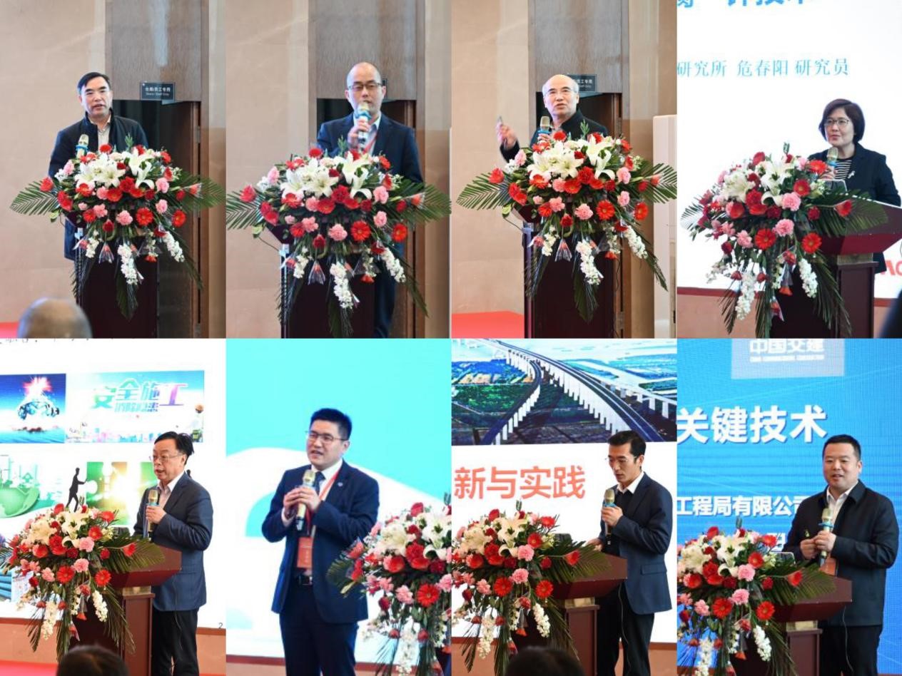 广东省交通运输协会会长鲁昌河,杭州嘉翔高强螺栓股份有限公司董事会秘书吴胜义,中铁大桥科学研究院高栓试验技术研究咨询首席专家题黄绍桥,中国科学院-苏州纳米科技与纳米仿生研究所研究员危春阳,中交第二公路工程局有限公司副总经理、总工程师霰建平,山东紫菜云数字科技有限公司副总裁兼供应链总经理孔祥建,中铁大桥勘测设计院集团有限公司副总工程师郑清刚,中交第二航务工程局有限公司公司副总工程师、技术中心党委书记、总经理田唯分别做了《粤港澳大湾区跨江(海)桥梁发展综述及最新建设进展》《杭州嘉翔高强螺栓股份有限公司》《高强度螺栓试验、安装、施拧及终拧质量检查安全质量过程控制研究》《第四代桥梁钢结构防腐“锌技术”》《桥梁工程全寿命建造理念探索实践》《双碳战略下基建物资的循环运营管理创新》《大跨度公铁两用桥设计创新与实践》《超高混凝土桥塔智能建造关键技术》的主题报告。