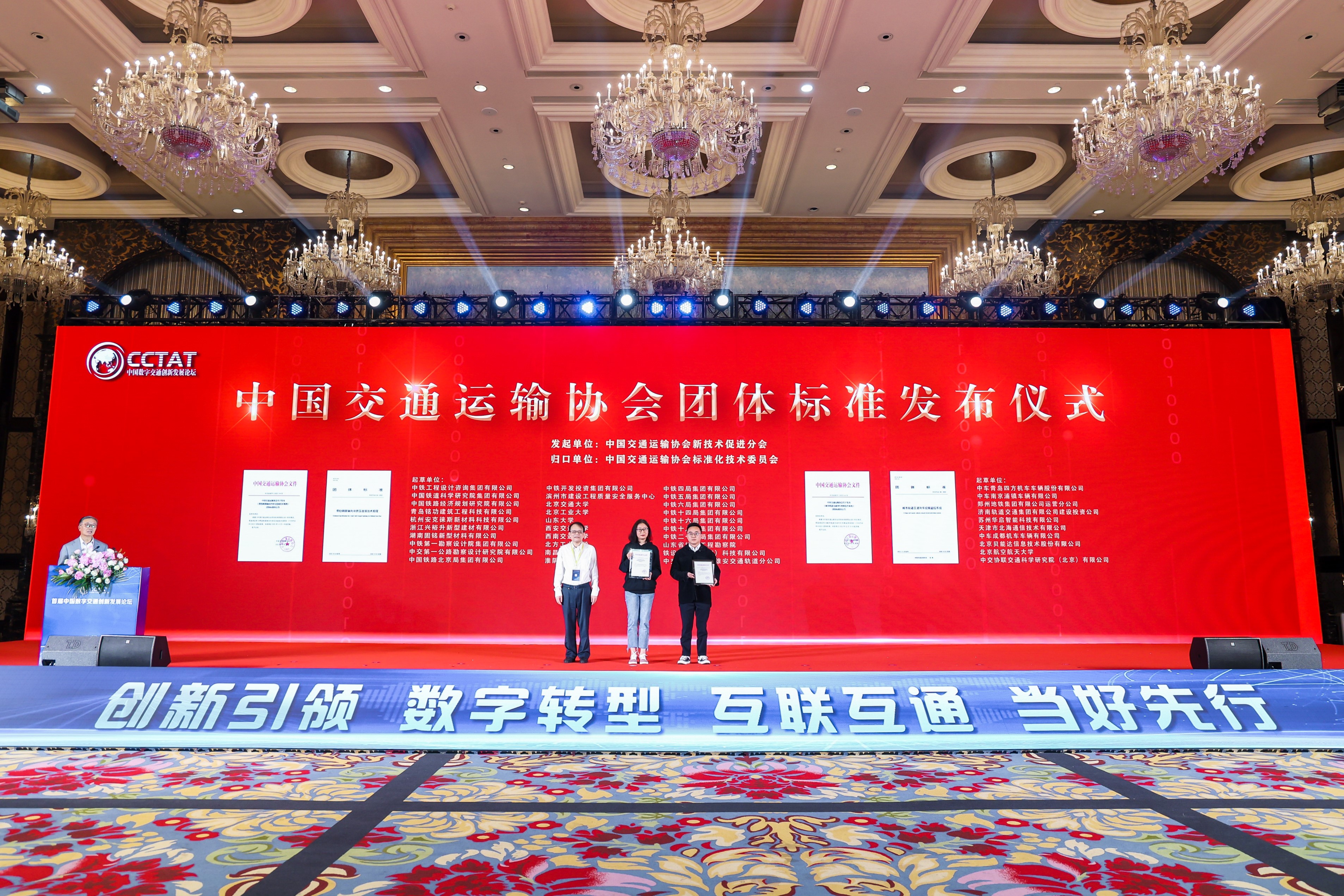 协会的发展,离不开会员单位的大力支持。在本次大会上,特设置了证书颁发仪式环节。在颁发仪式环节,中国交通运输协会新技术促进分会副会长兼秘书长于丁,分会副会长、国家能源投资集团二级业务总监曹广河为分会新增补的常务理事及理事单位代表颁发了会员牌匾;新技术促进分会首席专家,数字交通(公路)专家组主任李作敏为新增补的数字交通(公路)专家组副主任委员颁发聘书,中国交通运输协会副会长张春枝、交通运输部综合规划司原巡视员于胜英、交通运输部运输服务司原巡视员王水平为新增补数字交通(公路)专家组委员颁发聘书;交通运输部公路科学研究院副院长、中国交通运输协会标准化技术委员会副主任委员李爱民对协会近期发布,由新技术促进分会发起的《带肋钢筋轴向冷挤压连接技术规程》《城市轨道交通列车视频监控系统》两项团体标准做发布仪式致辞,并向中铁工程设计咨询集团有限公司、中车青岛四方机车车辆股份有限公司两家标准起草单位颁发标准发布公告及证书。