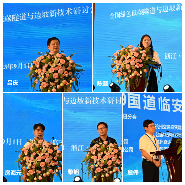 浙江大学防灾工程研究所所长吕庆,中铁工程设计咨询集团有限公司城交院副总工程师陈慧,马克菲尔(长沙)新型支档科技开发有限公司交通领域总工房海元,中国铁路经济规划研究院桥隧部高级工程师黎旭,浙江省交通运输科学研究院道路工程研究所所长詹伟,浙大城市学院工程学院常务副院长兼教务处处长丁智,浙江数智交院科技股份有限公司轨道院研发所所长李长俊,中铁第六勘察设计院集团有限公司首席专家贺维国,浙江交科交通科技有限公司执行董事兼总经理董志远,浙江省交通运输科学研究院高级工程师王强分别做题目为《公路岩质边坡数字化调查技术与应用》《隧道及地下工程低碳设计理念及低碳建造技术》《马克菲尔绿色公路工程实践与创新》《活动断裂带铁路隧道韧性结构体系及运营保通关键技术》《山区公路边坡“天空地”一体化安全防控技术研究与应用》《复杂环境盾构穿越敏感结构扰动机理及灾变控制技术》《隧道运营期结构安全监测预警与智能评价关键技术》《内河沉管法隧道技术发展与创新》《信息化技术与交通行业的深度融合》《公路隧道表观与隐蔽面病害快速同步检测与智能识别技术》的主题报告。